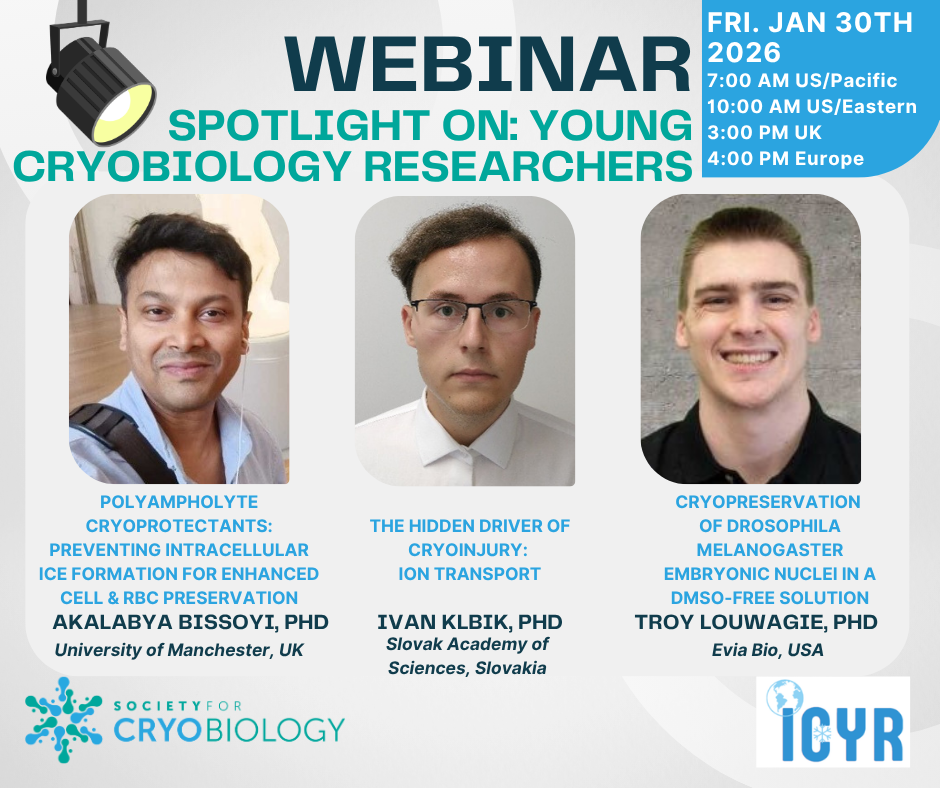 The International Cryobiology Young Researchers (ICYR) Association has organized for you to hear from experts from non-profits, industry, and academia.