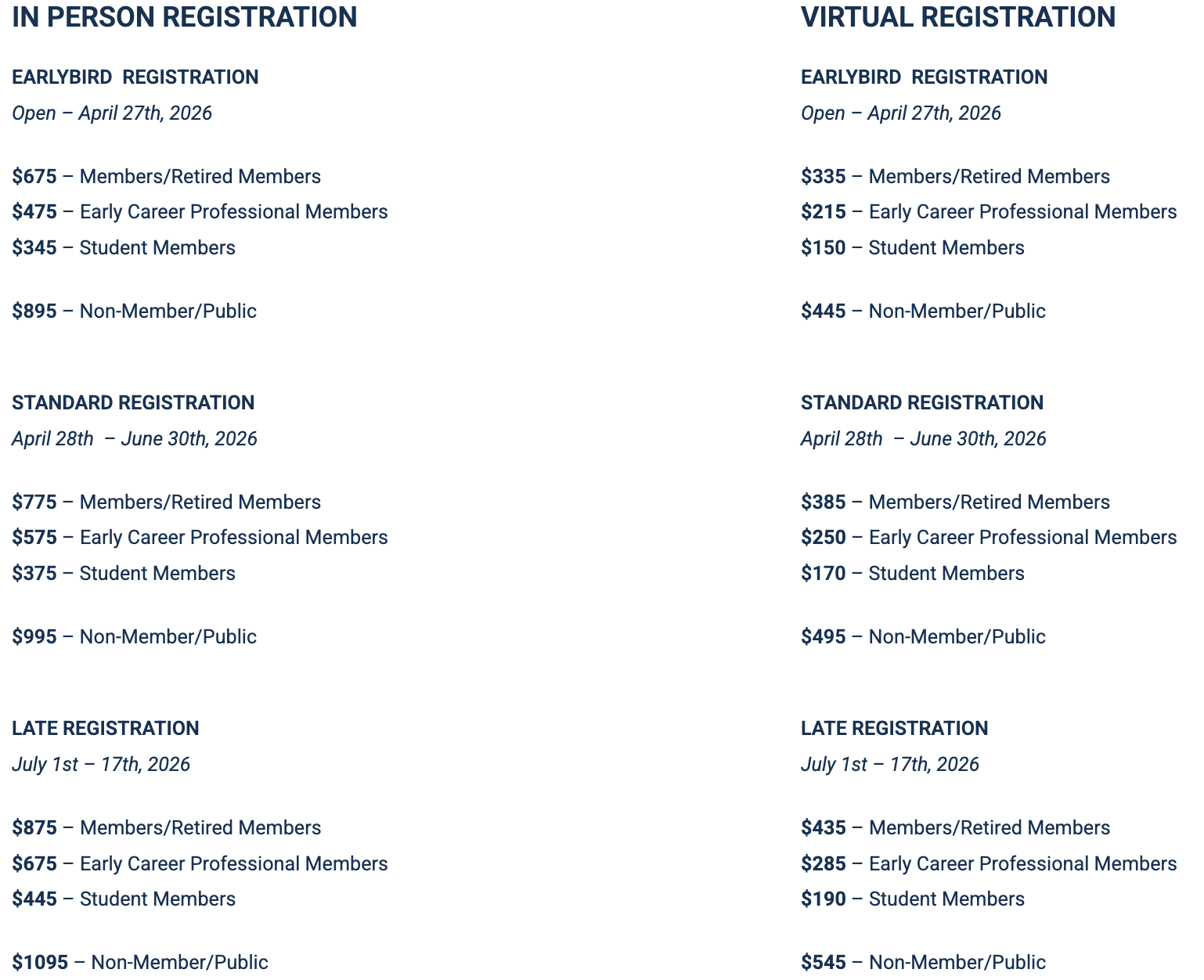 - Virtual registration cancellations on or after July 15th, 2026 will forfeit the registration fee.